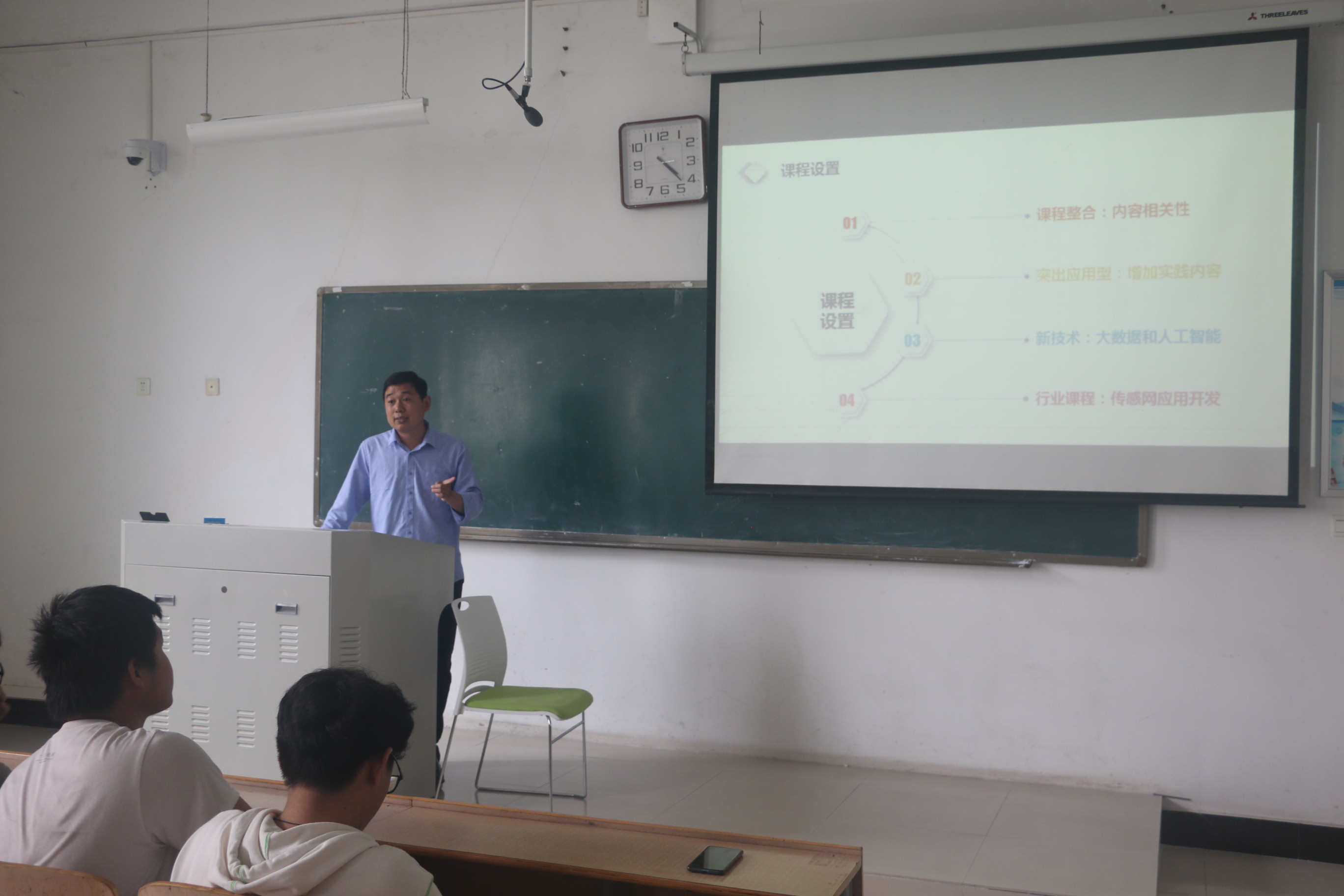 5月21日,日本中文字幕在线于梁园校区行方楼212室举行2020级计算机专业分流宣讲会。日本中文字幕在线党总支副书记路利,物联网工程系主任刘佳、计算机科学与技术系主任孙红丽、软件工程系主任陈涛,辅导员戴艳以及20级计算机类全体学生参加本次会议。