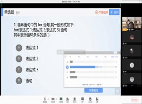 这节课虽然是在线上完成的,但是大家积极参与的热情一点也不比在教室里差,有答疑有互动,有实践练习,老师在课堂上设置的问题层层深入,不断引导学生思考,并及时让学生动手编写程序,教学效果不错。一节课结束,李海涛院长给予了简短的点评,并调查了学生对这种网课的满意度,希望役情带来的“停课不停教,停课不停学”真正有效地执行!另外几位老师就这种多手段并用、共同发辉最大的优越性给予了肯定!