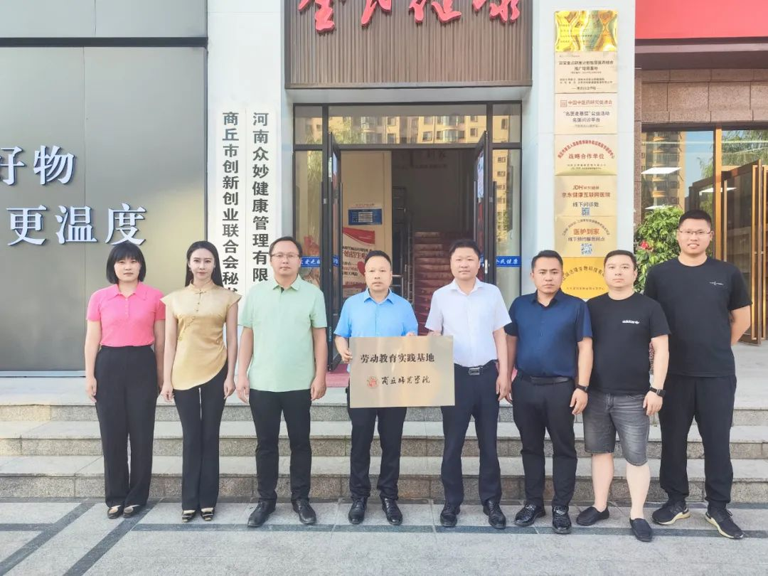 5月27日,日本中文字幕在线与商丘市创新创业联合会大学生劳动教育实践基地揭牌仪式在商丘市创新创业联合会举行。学生处处长韩坤,学院党委书记王国华、副书记袁慧,商丘市创新创业联合会会长杨长风,秘书长张银柱参加仪式。