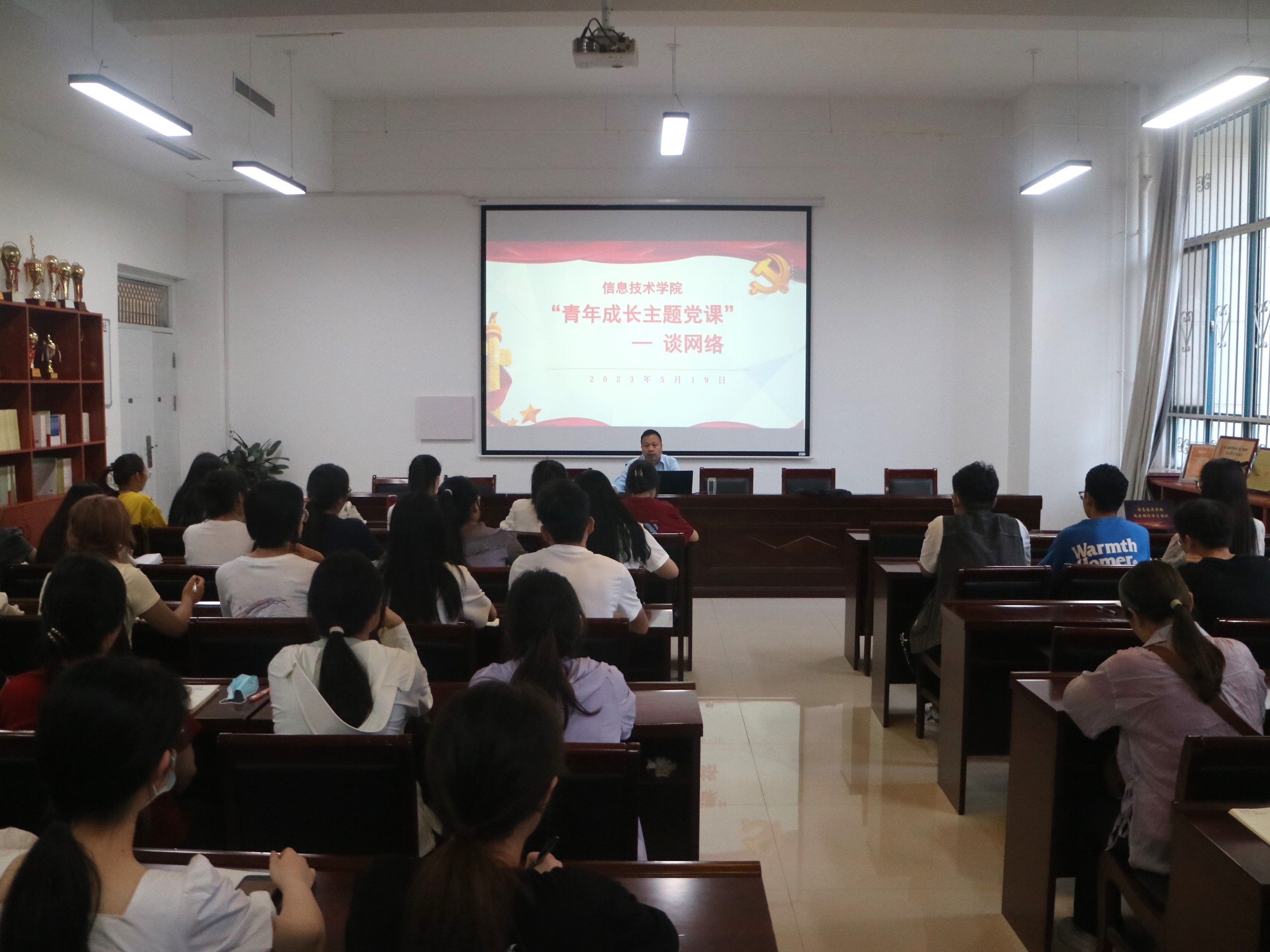 5月19日,日本中文字幕在线分党校在三商楼112会议室开展了以学习贯彻习近平新时代中国特色社会主义思想,立志做有理想、敢担当、能吃苦、肯奋斗的新时代好青年为主题的专题党课。本次专题党课由学院党委书记王国华主讲,第17期新发展的学生党员积极参与。
