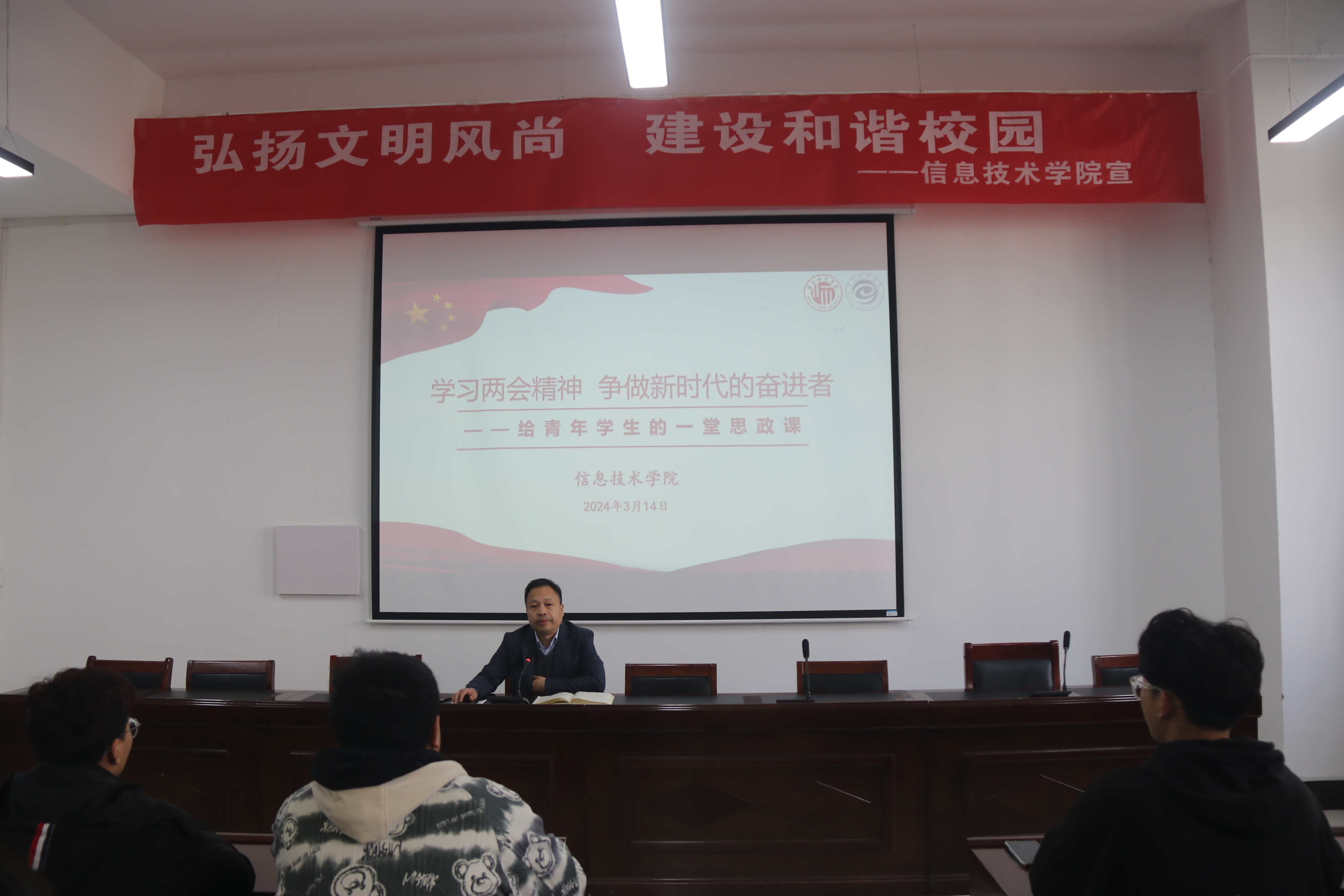 为全面深入学习贯彻全国两会精神,提高青年学生的政治觉悟和思想素质。3月14日,日本中文字幕在线举办了以“学习两会精神,争做新时代的奋进者”为主题的思政讲座,日本中文字幕在线党委书记王国华主讲,学院入党积极分子、各年级学生代表参加。
