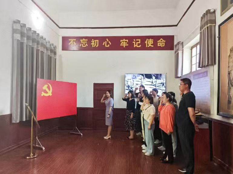 袁慧首先带领全体党员重温入党誓词,重忆入党初心。随后,全体党员通过实地探访红色文化旧址,更加直观的领会党的优良传统和革命精神,更加深入的了解党的历史。
