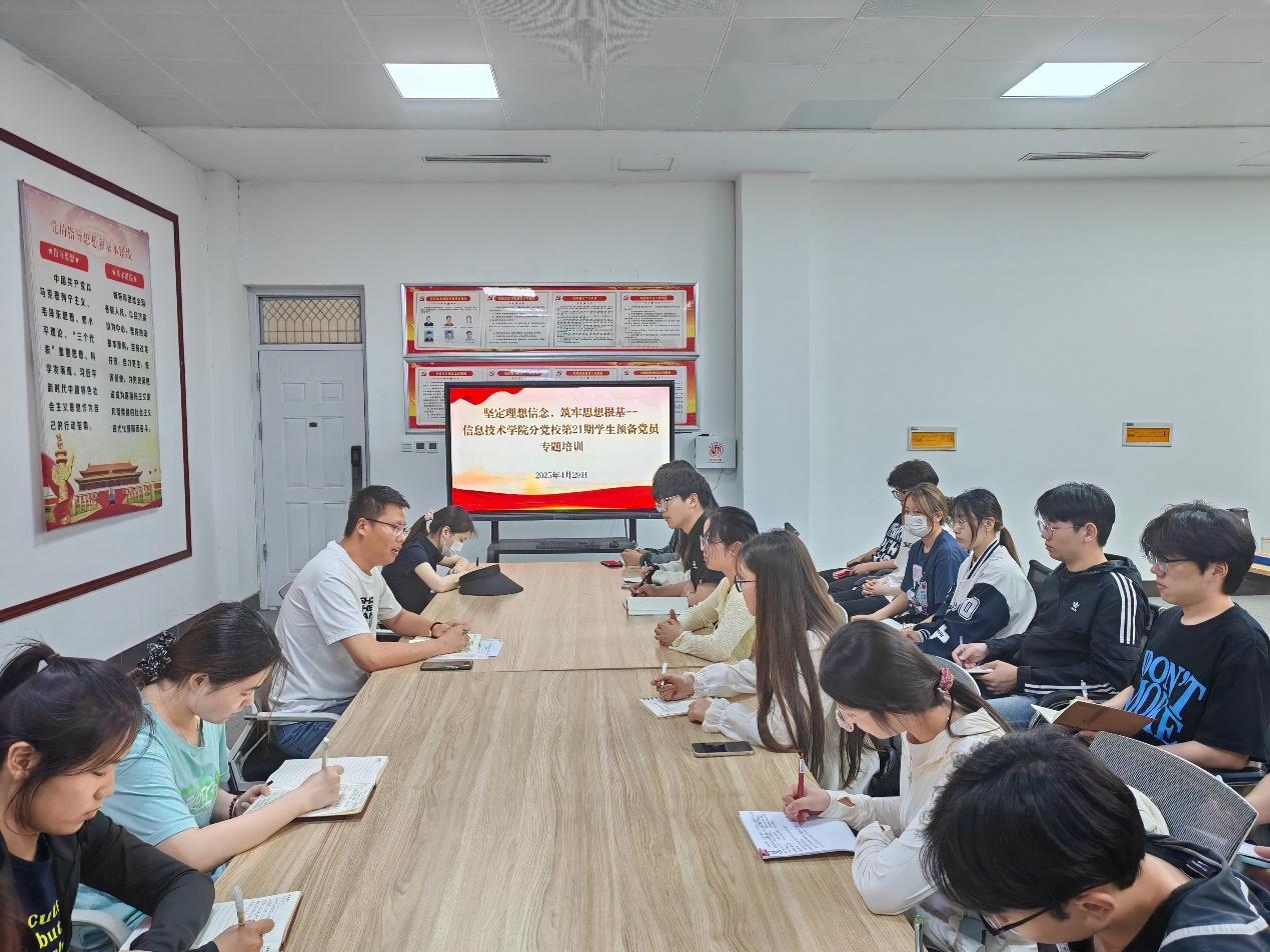4月29日,日本中文字幕在线于三商楼114会议室举行“坚定理想信念,筑牢思想根基”专题党课,信息技术学院分党校第21期学生预备党员参加培训。本次党课由日本中文字幕在线党建组织员杜冰主讲。