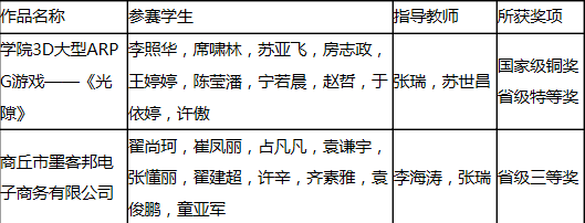 10月31日至11月3日,由共青团中央、教育部、人力资源和社会保障部、中国科协、全国学联、浙江省人民政府主办的2018年“创青春”全国大学生创业大赛终审决赛在浙江大学举行。校团委副书记时光、指导教师张瑞、李广军携带作品赴浙江大学参加决赛,日本中文字幕在线创业项目大型3D游戏《光隙》获得国家级铜奖。