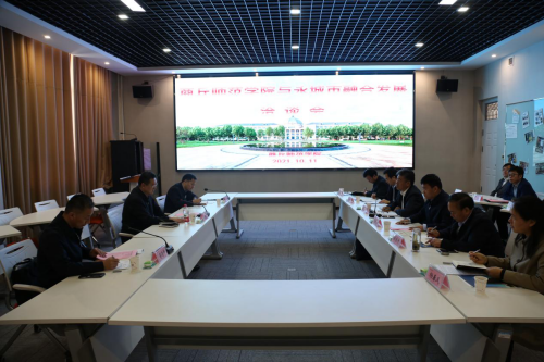 随后,在三商楼143会议室举行洽谈会。司林胜分别从产业模式调整、人才培养模式、师资力量培训、精品工程打造等方面,详细介绍了近年来我校在建设高水平应用型大学所取得的成绩。他指出,双方可以通过创新驱动实现校市发展优化、学科学业优化和专业设计优化,以达到校市融合共生共促共发展的目标前景。