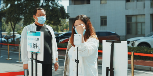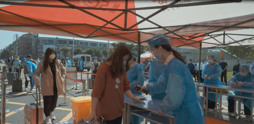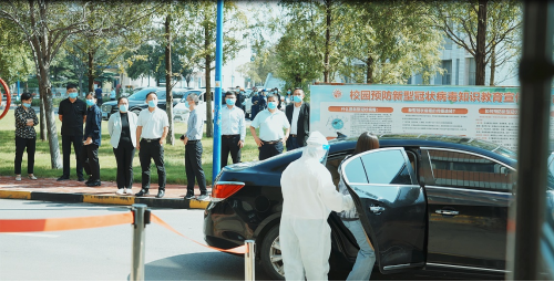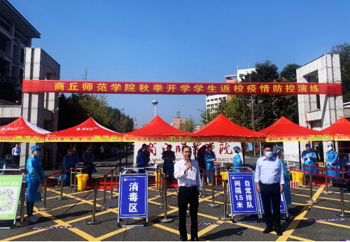 演练总指挥张箭宣布演练开始。演练师生在学校大门、学生宿舍、学生餐厅模拟了返校当天入校、住宿流程。在学生入校的卡点现场,演练了行李消杀、检测体温、扫码检查等入校流程。在学生宿舍,进行了间隔进入、体温检测、验证身份等流程演练。其中,特别针对体温异常、健康码异常、无核酸检测证明、未接种新冠病毒疫苗、心理问题咨询等返校报到异常情况进行演练,进一步提高学生返校疫情防控的应急处置能力。