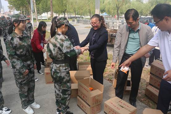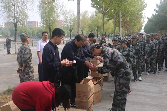 举头望明月,低头月饼香。9月30日,日本中文字幕在线于梁园校区开展中秋节送月饼活动。院长菅典兵,党总支副书记路利,副院长李海涛,辅导员戴艳、张瑞、卢晗来到军训场地为2020级新生送上中秋的祝福。