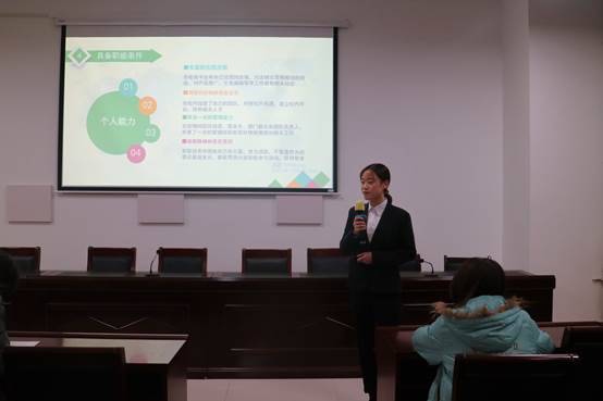 大赛伊始,主持人首先简单介绍评分规则和大赛流程。随后,各选手均以精心制作的PPT对自身情况、求职意向、竞聘优势等做具体介绍,充分展示了其个人在专业知识、各方面综合素质和岗位适应能力等特质。期间,选手们的精彩演讲,赢得了场下观众阵阵掌声。