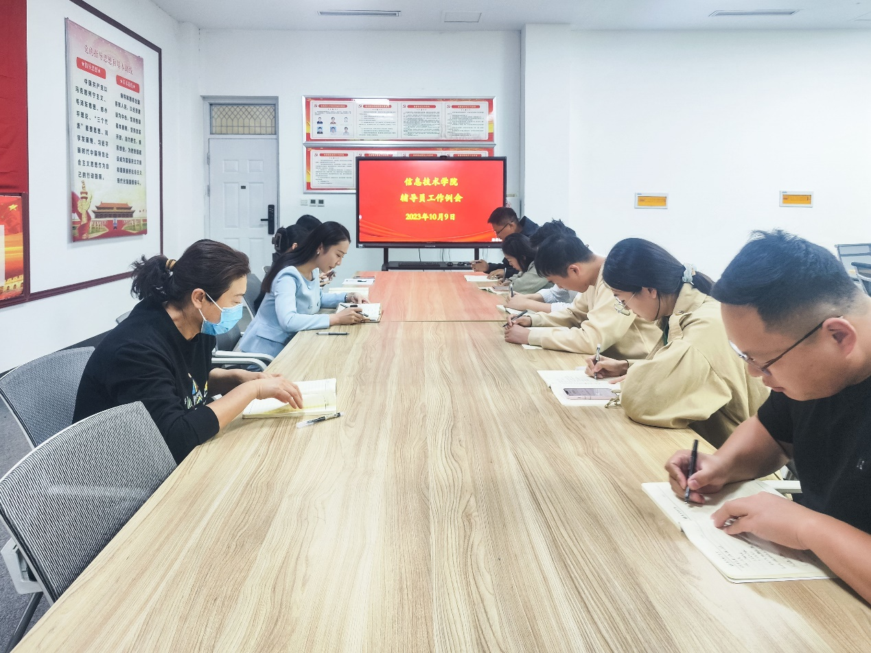 10月9日,日本中文字幕在线在三商楼112会议室召开辅导员工作例会,党委副书记袁慧、心理健康工作室负责人吴楚和全体辅导员老师参会。