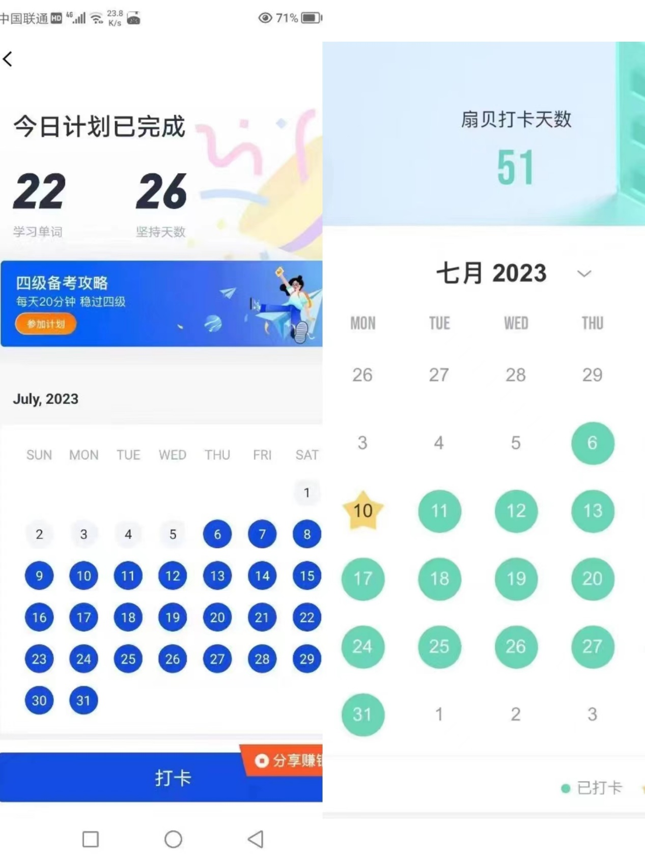 此次打卡活动为期两个月,是我院学风建设的其中一项举措。旨在帮助全体学生合理分配暑期时间,培养良好的英语学习习惯,为四六级考试做充分准备,同时创造了共同努力的班级学习氛围。