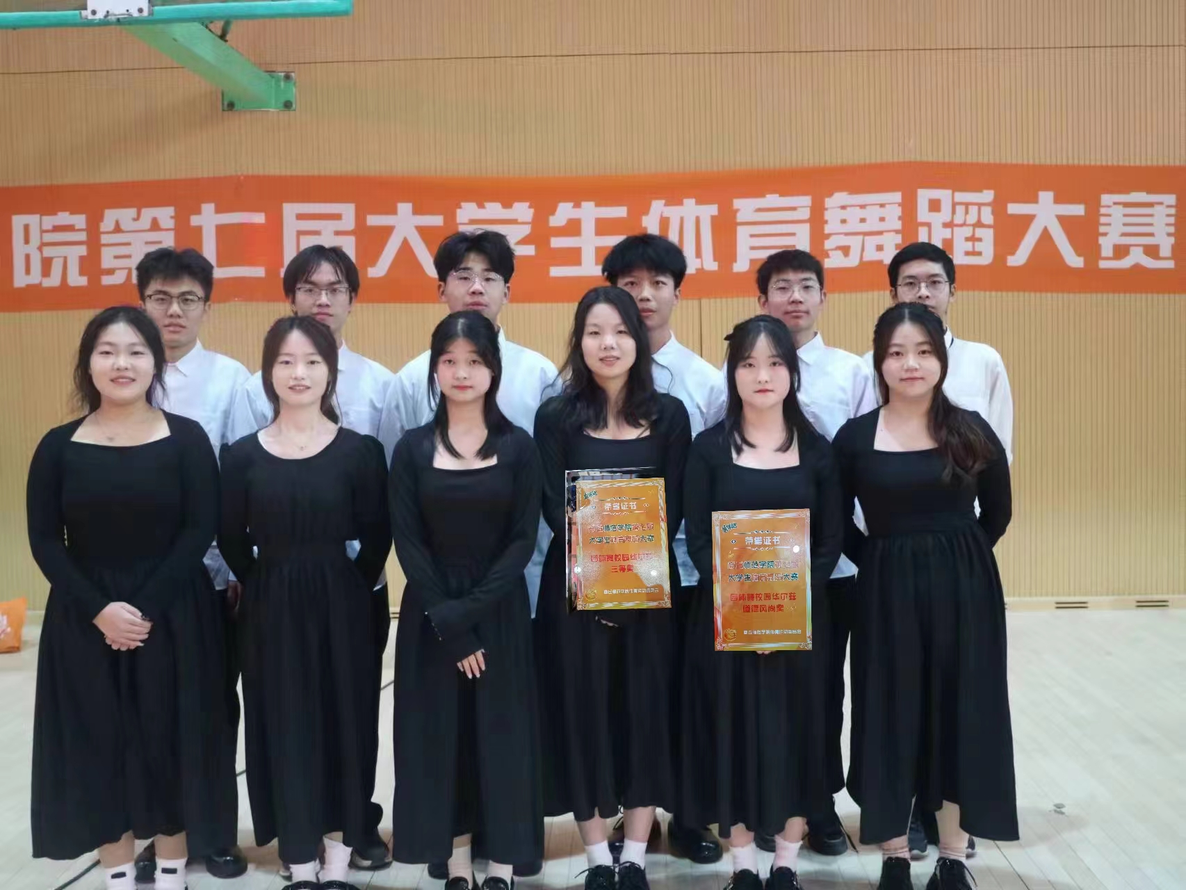 2023年11月24日下午,商丘师范学院第七届大学生体育舞蹈大赛在我校篮球馆隆重举行。我院荣获团体舞校园华尔兹三等奖和团体舞校园华尔兹道德风尚奖。