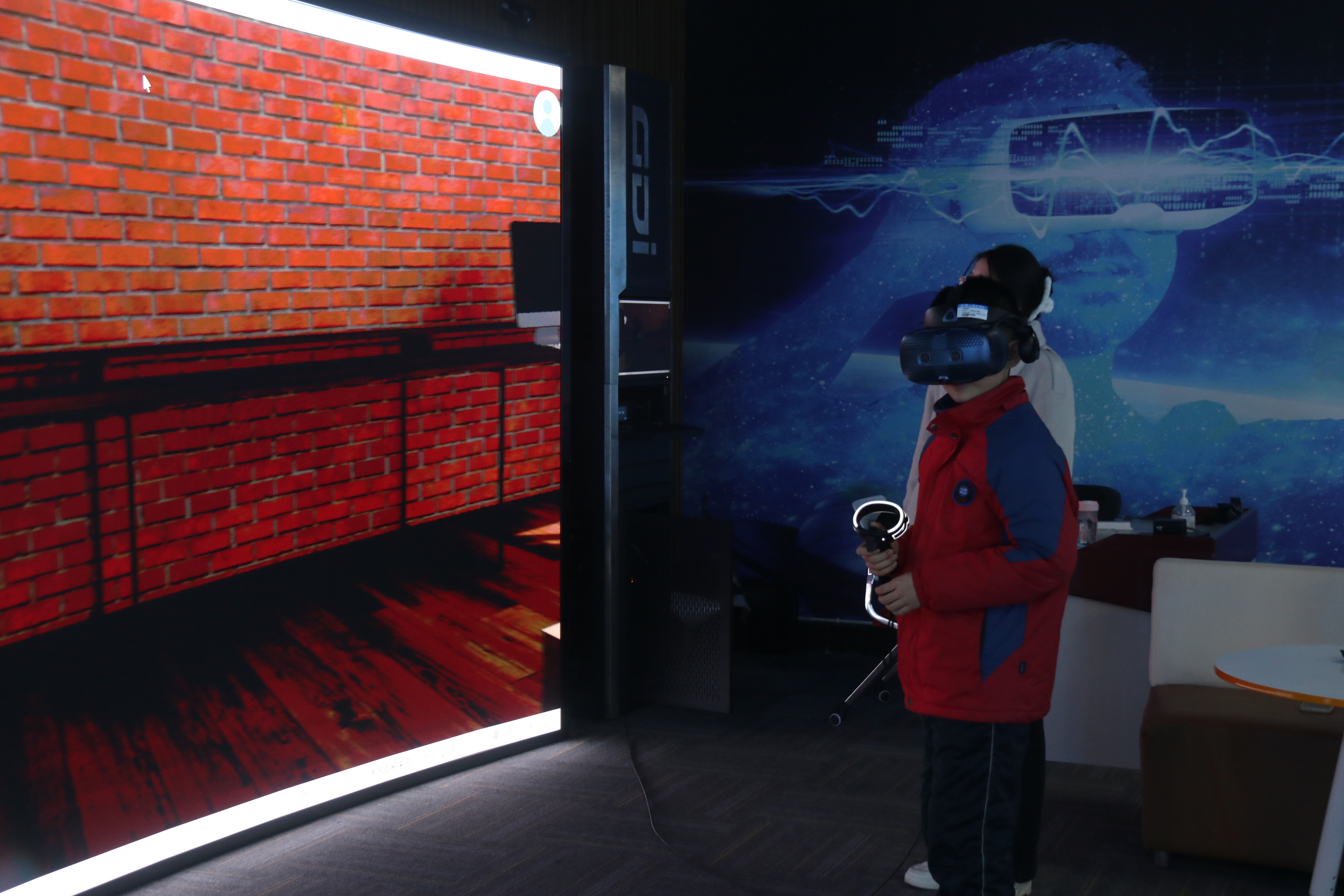 揭牌仪式后,该校学生在学院志愿者带领下开展科技社团研学活动,分别参观了人工智能教学实训中心、无人机应用中心、虚拟现实实训室等实验室,每个实验室都为参观人员安排了大学生志愿者进行知识讲解。小朋友们在参观过程中积极主动体验人工智能、VR等信息技术,现场氛围轻松有趣。