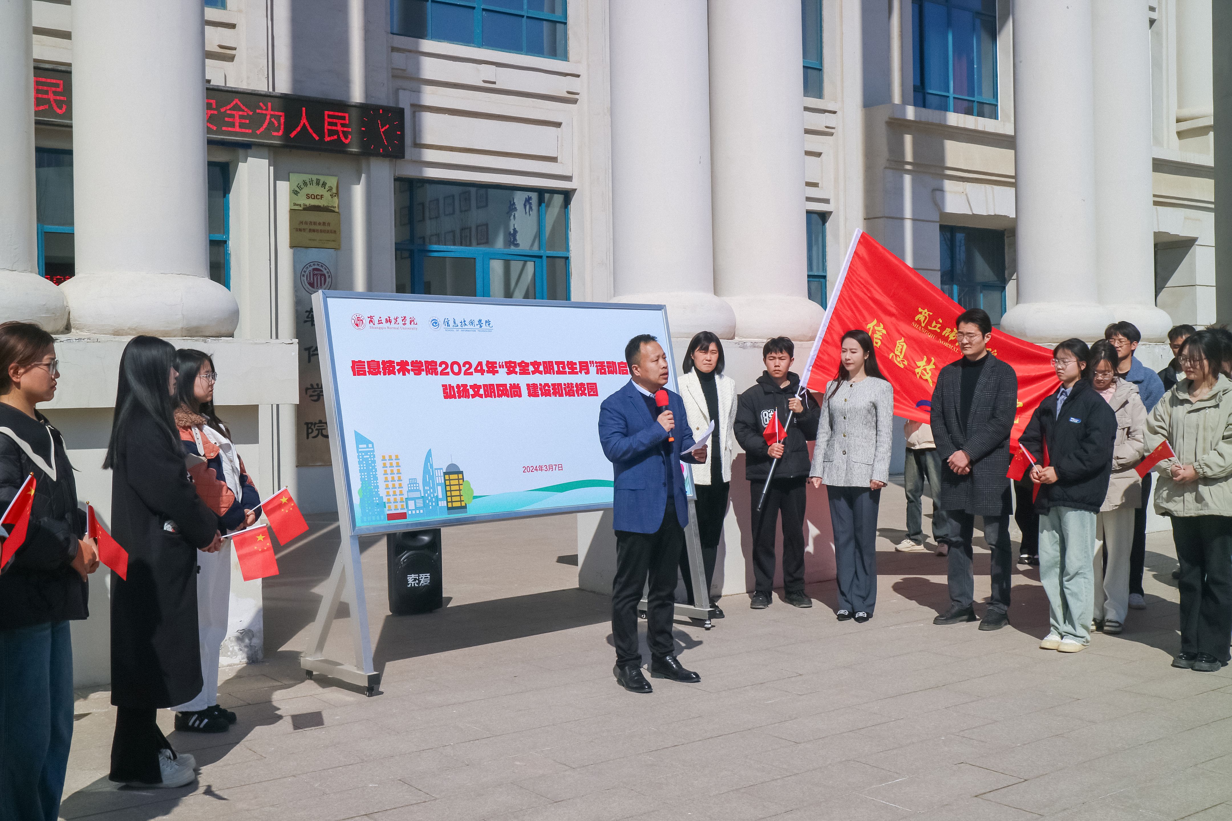 为切实提高广大师生的安全文明意识和思想道德素养,营造文明和谐的育人环境。3月7日,日本中文字幕在线于三商楼举行2024年“安全文明卫生月”活动启动仪式。日本中文字幕在线党委书记王国华,党委副书记袁慧,各年级辅导员及各班班委参与启动仪式。仪式由学工办主任李阳主持。
