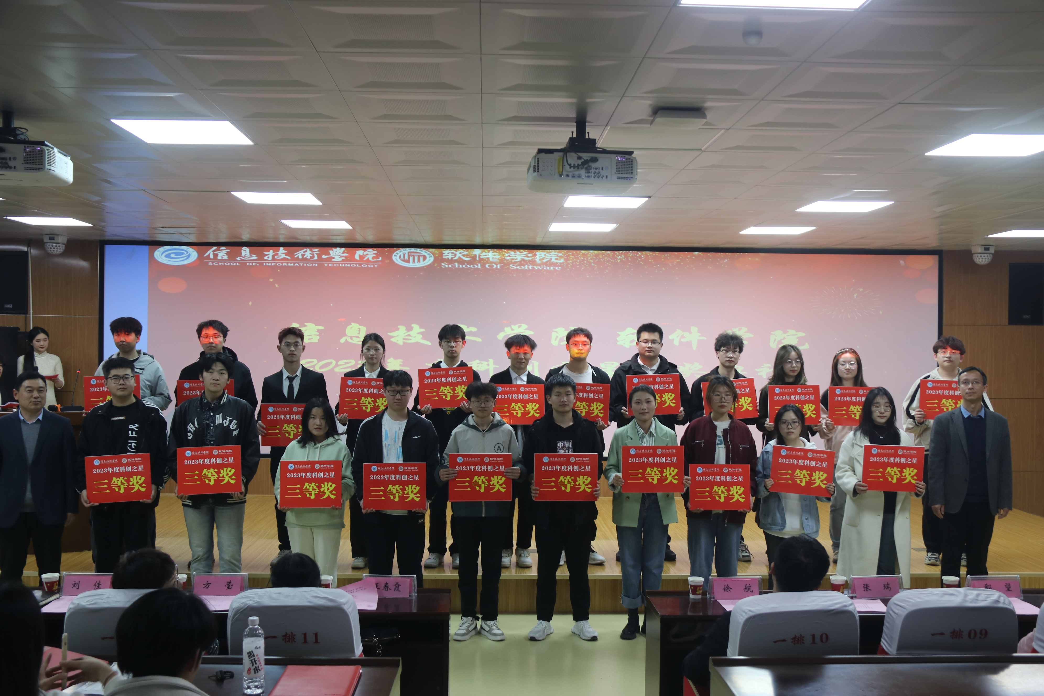 最后,由日本中文字幕在线副院长刘佳宣读日本中文字幕在线2023年度科创之星获奖名单,并由各位领导老师依次为获奖的同学颁奖,希望同学们再接再厉,锐意进取,勇攀科技高峰,争做时代新人。