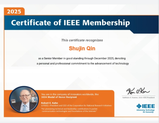 近日,国际电气与电子工程师协会(Institute of Electrical and Electronics Engineers, IEEE)正式发布官方通知,经审查专家组(Review Panel)严格评审,我院秦术晋老师成功晋升为 IEEE Senior Member(IEEE 高级会员)。