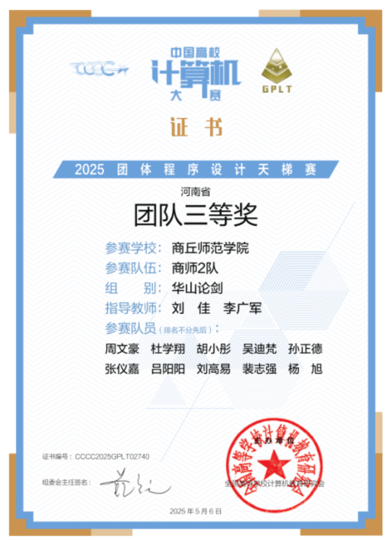 近日,2025年大学生团体程序设计天梯赛圆满落幕,商丘师范学院日本中文字幕在线代表队凭借卓越实力脱颖而出,斩获多项殊荣,创造了学院在该项赛事中的最佳成绩。
