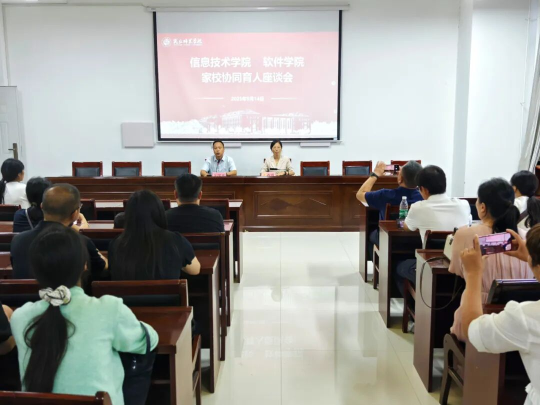 王国华代表学院对各位家长的到来致以热烈欢迎,并阐述了家校协同育人对于学生成长成才的重要意义。王春霞介绍了学院概况、办学历史、师资队伍和学科建设情况;以及办学特色,重点说明了"产教融合、面向未来"的人才培养模式,展示了学院在校企合作、实习实训等方面的创新举措;深入解读了"厚基础、强培养、重创新"的培养体系,具体介绍了课程设置、实践教学和创新能力培养等方面的特色做法。王国华围绕"认识大学、读懂大学、携手育人"三个维度,与家长进行了深入交流。他强调,大学是学生成长成才的关键时期,学院始终坚持"五育并举"的育人理念,致力于培养学生成为德智体美劳全面发展的时代新人。他希望家校携手,共同培养学生健康的心态、自律的习惯、博学的素养,为学生未来发展奠定坚实基础。